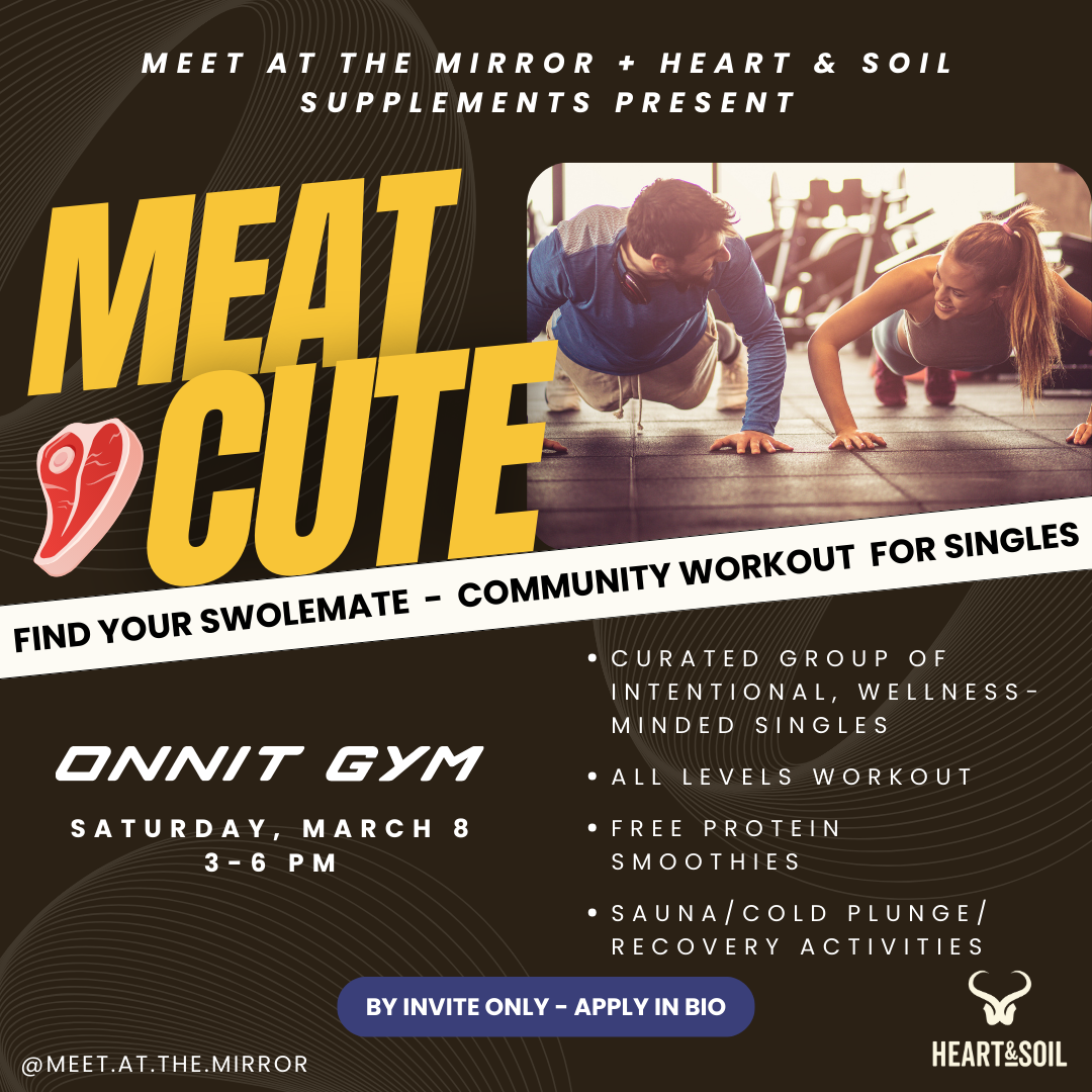 Join us for Meat Cute, a unique singles event with Heart & Soil Supplements that blends fitness, wellness, recovery, and intentional connection for a fun, natural way to meet like-minded people.
